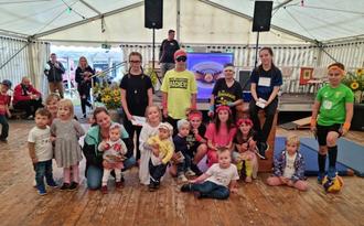 Für unsere Kinder gab es eine Kreativecke, in der fleißig gebastelt werden konnte. Madlen Kahte hat mit den Kindern Butten gestaltet und hergestellt. Ein Highlight war der Stand von der Naturwacht, der von Monika Gierach betreut wurde. Alle konnten etwas über die heimischen Lebewesen und die Pflanzenwelt erfahren. Außerdem konnten sich unsere Kinder und auch die Erwachsenen von Julia Böhm anmalen lassen.Dankeschön euch Dreien. Trotz der Angebot mussten wir wegen dem Wetter einen Hauptprogrammpunkt verschieben. Unser Sportfest "Chaotisch bunt" findet jetzt an unserem Kinderzeltwochenende am 2./3. September auf dem Festplatz statt. Macht euch alle startklar! Einen Höhepunkt gab es allerdings noch. Nach dem die Blasmusik fertig war, gab es zur Kaffeetafel nicht nur Kaffee und Kuchen sondern auch ein buntes Bühnenprogramm von unseren kleinen und großen Kindern. Trotz zahlreicher Schwierigkeiten während der Proben, haben die Kinder ganze Arbeit geleistet und von unseren Gästen großen Applaus bekommen.