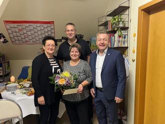 Der Bürgermeister Michael Bedla gratulierte Bianca Spittel am 22. Dezember 2023 zum 25-jährigen Dienstjubiläum. Frau Spittel ist seit 1998 bei der Stadt Leuna und seit 2001 Leiterin des Hortes der Friedrich-Ludwig-Jahn Grundschule.