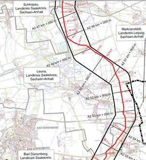 Das Vorhaben westlich der Ortschaften Zöschen und Zscherneddel verlaufen und dann nordöstlich um Witzscherdorf, Kötzschau und Rampitz. Weiter im Süden werden die Leitungen parallel zur Bundesautobahn 9 verlaufen.