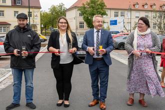 Liebe Anwohnerinnen und Anwohner des Bereiches der Wesselinger Straße, nach gut 12-monatiger Bauzeit wurde die Wesselinger Straße am 7. Oktober 2023 feierlich eröffnet. Gemeinsam mit den Stadtwerken Leuna wurden die Infrastrukturen auch unterhalb der Fahrbahndecke erneuert. Die Straßenbeleuchtung wurde auf LED umgestellt und die heutige Straßenentwässerung versickert in die angrenzenden Grünflächen. Das ist auch gut sichtbar und zusätzlich ist für große Regenwassermengen bei Starkregen noch ein neuer Regenwasserkanal gebaut worden. Dieser entwässert den überschüssigen Niederschlag in den alten Saalearm. Es werden/wurden im Rahmen der Grünflächengestaltung 19 Bäume, 350 Sträucher und 1.770 Stauden und ca. 6000 Blumen(-zwiebeln) gepflanzt bzw. gesteckt. Abschließend wurde eine Vorrüstung für das Glasfasernetz verbaut. Die Maßnahme wurde mit Mitteln aus dem Programm „Aktive Stadt- und Ortsteilzentren“ der Städtebauförderung gefördert. Die Gesamtkosten betrugen 1,1 Millionen Euro.