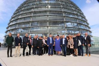 Polnische Delegation, Michael Bedla und der Bundestagsabgeordnete Dieter Stier (Mitte) vor der Kuppel des Reichstagsgebäudes