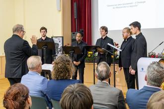 Musikalische Gestaltung: AuditivVokal Dresden unter der künstlerischen Leitung von Olaf Katzer. Zu Gehör wurde in einer Welturaufführung „Stimme aus dem Leunawerk - 3 Gesänge für Männerchor a capella“ mit dem Text von Walter Bauer und einer Komposition vom Walter Furrer (1931) zu Gehör gebracht.