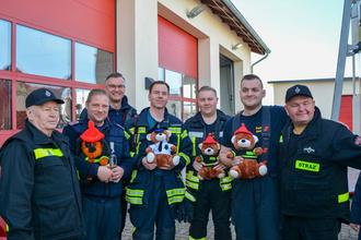 Als kleines Dankeschön brachten die polnischen Kameraden ihre Maskottchen für die Leunaer Feuerwehrleute mit