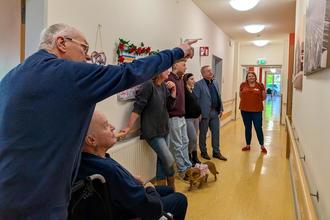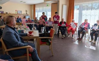 Bürgermeister Michael Bedla war gern zur Feierstunde am 8. April gekommen, um gemeinsam mit den Bewohnerinnen und Bewohnern auf die Neugestaltung anzustoßen. Bei Kaffee, Kuchen und Schnittchen tauschte sich der Bürgermeister mit den Bewohnern, Pflegekräften und Frau Busch aus und lobte ihr Engagement bei der Pflege und Fürsorge der Bewohnerinnen und Bewohner.