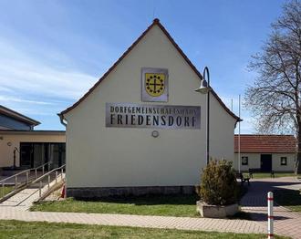 Was auch einige Zeit in Anspruch genommen hat und nun fertig gestellt wurde, ist die Beschriftung unseres Dorfgemeinschaftshauses. Von einem ehemaligen Ortschaftsratmitglied wurde die Beschriftung vor längerer Zeit angeregt und vorgeschlagen. Nachdem dies im Ortschaftsrat beschlossen und von der Verwaltung genehmigt wurde, kamen mehrere Vorschläge und Varianten in Betracht. Als dann die Giebelseite, als Anbringungsort, das Motiv mit Wappen und der Schriftzug aus einzelnen Buchstaben aus Edelstahl fest standen, wurde auch dieses wieder verworfen. Gründe hierfür waren das Gewicht der Edelstahltafel mit dem Wappen, die Hohllochziegel im Mauerwerk für die einzelnen Buchstaben und der gestiegene Kostenfaktor. Durchführbar war dann die jetzige Variante die unserer Meinung nach sehr gut aussieht, passt und ihren Zweck erfüllt. Was lange währt wird gut!
