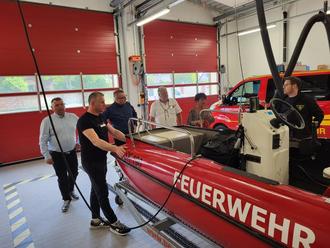 Peter Engel (Ortsbürgermeister Kreypau und Stadtrat) und Sven Störer (Ortschaftsratsmitglied Kreypau) luden die polnischen Gäste kurzfristig zur Besichtigung der Feuerwehr in Kreypau ein.