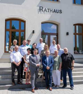 Bürgermeister Michael Bedla mit den Delegationen der Partnerstädte und Stadträten