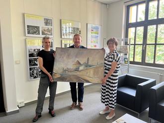 Das ca. 100 x 80 cm große Acrylbild übergaben die Schwestern Renate Israel und Barbara Renner am 10. Juli 2023 an Bürgermeister Michael Bedla.