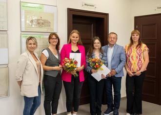 v. l. n. r. Susann Mangold (Personalrat), Katharina Bühligen (Fachbereichsleiterin), Tessa Engelmann, Elisabeth Müller, Michael Bedla (Bürgermeister), Maria Rudnick (Personal)