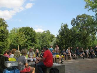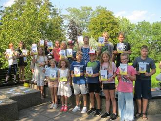 In diesem Jahr fand die Abschlussveranstaltung bei strahlenden Sonnenschein am 23.8.2023 im Plastik-Park der Stadt Leuna statt. 13 Mädchen und 6 Jungen waren mit ihren Eltern gekommen. Für dieses Event konnten wir den Leunaer Schriftsteller Jürgen Jankofsky gewinnen, mit einem unterhaltsamen Leseratten-Lied begann unsere Veranstaltung. Anschließend las er eine Geschichte aus einem seiner Bücher vor. Die Kinder suchten sich die Geschichte mit dem Titel „Wer das liest ist doof" aus. Mit einem kleinen Lied verabschiedete sich Herr Jankofsky. Jetzt war es soweit: Als Anerkennung für die Teilnahme am Lesesommer bekamen die Kinder ein Zertifikat, ein Büchergutschein und ein kleines Präsent von der Stadtbibliothek. Alle Kinder waren sich einig: Nächstes Jahr sind wir wieder dabei.