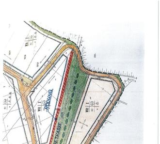 Ab Oktober wird daher die Linde AG die betroffenen Bereiche (rote Schraffur) vom Bewuchs befreien. Dies wird auch einen großen Teil der rückwärtigen Bepflanzung der Hausgärten betreffen.