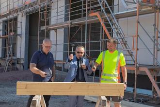 Wurde am Jahresende des vergangenen Jahres der Grundstein für das neue Objekt Bauhof Leuna gelegt, konnte am 26. August 2025 Richtfest gefeiert werden. Der Zeitplan war nicht ganz einzuhalten, informierte Bürgermeister Michael Bedla. Aufgrund des Frostes im Frühjahr gab es eine Verzögerung von 8 Wochen. Im Februar konnte zum Beispiel eine bituminöse Abdichtung im Untergeschoss nicht verarbeitet werden. Aufgrund von Minusgraden dauerte das Abbinden des Betons für die Untergeschossdecke und -wände ebenfalls länger als geplant. Man sei jedoch zuversichtlich, dass die Mitarbeiterinnen und Mitarbeiter ab Februar in das neue Objekt einziehen können.