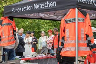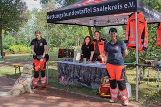 Das Team der Rettungshundestaffel Saalekreis e. V. informierte zu den Aufgaben der speziell ausgebildeten Hunde und ihre ehrenamtliche Arbeit