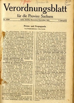 Halle 1. November 1945 Der Präsident der Provinz Sachsen Dr. Hübner.