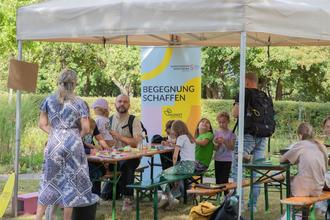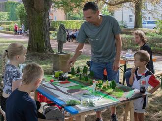 Robert Dubberke vom Jugendfreizeitzentrum Leuna bastelte mit den Jüngsten