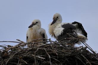 Störche sind mit drei bis vier Jahren geschlechtsreif. Das Nest aus Ästen, Reisig und Füllmaterial, das bis zu 2 m breit und bis zu 2 t schwer sein kann, legt er überwiegend auf von Menschen errichteten Unterlagen wie Hausdächern oder Masten an. Die gewaltigen Nester werden oft jahrzehntelang genutzt. Weißstörche leben in einer Saisonehe. Sie kehren immer wieder zu ihrem Horst zurück und sind damit eigentlich nicht ihrem Partner, sondern ihrem Nest treu. Mitunter finden teilweise heftige Auseinandersetzungen mit Rivalen bei der Besetzung der Horste statt. Dann wird mit der Reinigung und Ausbesserung des Nestes begonnen. Kurz nach den Männchen treffen die Weibchen ein, welche mit Geklapper willkommen geheißen werden. Nach der Paarung im April werden 3-5 Eier gelegt. Die Eier sind doppelt so groß wie Hühnereier. Gebrütet wird abwechselnd etwa 32 Tage lang. In den ersten 3 Wochen nach dem Schlüpfen bleibt ein Elternteil ständig im Nest, um die Küken vor der Witterung und Raubvögeln zu schützen. Die Eltern werfen kränkliche oder bei Nahrungsmangel die schwächsten Jungtiere aus dem Nest, um das Überleben der anderen Küken zu sichern. Die Jungen wachsen schnell. Mit etwa 5 – 6 Wochen schaffen sie es, ausdauernd im Nest zu stehen. Mit 7 Wochen haben sie die Größe der Eltern erreicht. Sie unterscheiden sich dann nur noch durch den schwarzen Schnabel und die schwarzen Beine von ihren Eltern. Nun beginnen auch die ersten Flugversuche. Dann kann man mitunter gefährliche Flugmanöver beobachten. Mit 8 – 9 Wochen sind sie flügge. Gefüttert werden sie von den Eltern bis zum 3. Lebensmonat. Im August brechen die Jungvögel kurz vor ihren Eltern ins Winterquartier auf.