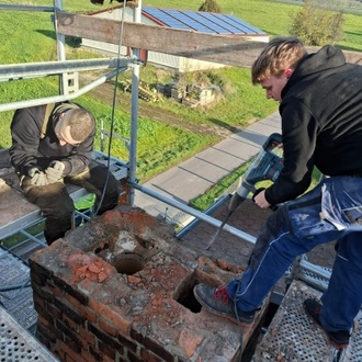 Der durch den Schornsteinfeger gesperrte Schornstein auf der Turnhalle musste abgerissen werden. Sehr gern haben wir als Verein die Gemeinde unterstützt und mit 8 Mitgliedern des Vereins und Hr. Mütze sowie Hr. Lauterbach dem Abriss durchgeführt. Das Gerüst zum Abriss wurde von der Gemeinde beauftragt, ebenso übernimmt die Gemeinde die Entsorgung.