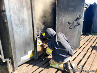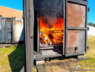 Hierbei handelte es sich um eine realistische Heißausbildung und dem Training in einer feststoffbetriebenen, mobilen Brandcontaineranlage. Das ganze unter realistischen Bedingungen bei Nullsicht, extremen Temperaturen, die bei einem realen Wohnungsbrand herrschen können und dem sicherheitsgerechten Verhalten. Die Kameraden konnten hierbei eine realistische Darstellung eines Brandverlaufs in einem Objekt erhalten.