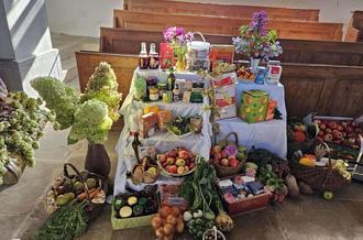 Am Sonntag, den 28.09.2025 feierten wir unter dem Motto „gönn dir Dankbarkeit“ das Erntedankfest. Die Baustellen-Kirche war durch die vielen Erntedankgaben wunderschön geschmückt, ein Kürbis schaffte es direkt in das Taufbecken und die Symbole strahlten noch von unserem Festwochenende. Über die Erntegaben freute sich wieder der Missionshof Lieske. Vielen Dank an alle!