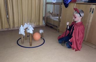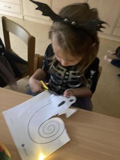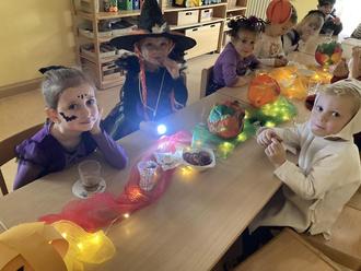 Am Vormittag begingen alle kleinen Geister in ihren Gruppen das Gespensterfest. Alle Kinder kamen im Kostüm und feierten mit Geistertanz, Gespensterbasteln, Geisterkegeln und vielem mehr.