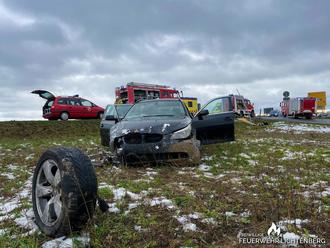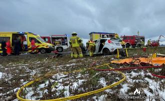 Wir wurden gemeinsam mit der Gemeindefeuerwehr Wachau zu einem schweren Verkehrsunfall zwischen zwei PKWs auf die S95 alarmiert. Vor Ort bestätigte sich die gemeldete Lage. Zwei Fahrzeuge stießen im Kreuzungsbereich aufeinander, dabei wurde eine Person im Fahrzeug eingeklemmt und mehrere verletzt. Wir stellten unser hydraulisches Rettungsgerät in Bereitschaft, unterstützten bei der Absicherung der Einsatzstelle, der Sicherstellung des Brandschutzes und unterstützten den Rettungsdienst beim Transport zum Rettungswagen.
