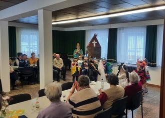 Mit viel Begeisterung studierten die 16 Jungen und Mädchen das bekannte Lied ein, bastelten liebevoll passende Kostüme und Requisiten und probten ein kleines Theaterstück. Der große Auftritt ließ nicht lange auf sich warten: Zunächst führten die Kinder die Vogelhochzeit in der Kita vor allen Kindern und Erzieher/-innen auf und begeisterten anschließend die Rentnerinnen und Rentner der Gemeinde Lichtenberg im Bürgerhaus mit ihrer Aufführung.
