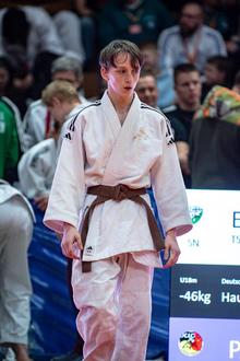 Durch seinen ersten Platz bei der Mitteldeutschen Meisterschaft konnte Erik Kammer am 01.03. nach Leipzig fahren und dort bei der Deutschen Meisterschaft auf die Matte gehen. Hier startete er in der niedrigsten Gewichtsklasse -46kg. Hier musste und wollte er sich gegenüber den Besten Kämpfern ganz Deutschlands behaupten.