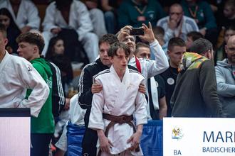 Wie schon bei den Wettkämpfen zuvor konnte sich Erik am Vormittag in der U18 mit grandiosen Leistungen durchsetzen, alle seine Gegner besiegen und den ersten Platz erlangen. Als jüngster Jahrgang also durfte er mit Gold nach Hause fahren und ist somit auch direkt für die Deutschen Meisterschaften qualifiziert. Eine große Ehre.