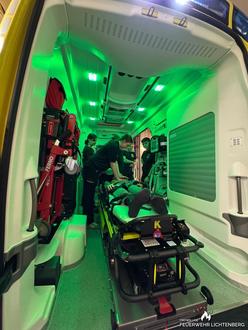 An der dritten Station stand die Reanimation im Mittelpunkt. Trainiert wurde der Ablauf der Basisreanimation (BLS) sowohl bei Erwachsenen als auch bei Kindern, wobei auf die jeweiligen Unterschiede besonders eingegangen wurde. Die Kameraden übten die Herzdruckmassage, die Beatmung sowie den sicheren Umgang mit unterstützenden Geräten des Rettungsdienstes. Ein besonderes Highlight war die Durchführung einer Erwachsenenreanimation unter realistischen Bedingungen in einem Rettungswagen. Diese Übung stellte eine zusätzliche Herausforderung dar, da hier unter beengten Platzverhältnissen und mit vorhandener Fahrzeugtechnik gearbeitet werden musste, eine Situation, wie sie im Einsatz jederzeit vorkommen kann.