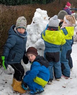 Egal ob beim Rodeln im Garten, einer Winterwanderung quer über die Felder oder beim Rodeln auf dem großen Rodelberg – immer und überall stand Bewegung an der frischen Luft an erster Stelle. Wer dann noch die größte Schneekugel rollen wollte, der brauchte dazu viel Kraft und starke Freunde. So wird bei uns auch ein gutes soziales Miteinander gelebt.
