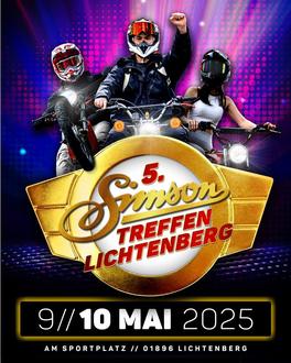 Am Samstag, den 10.05.2025 ist es soweit und wir feiern bereits das 5. Simsontreffen. Ab 10.00 Uhr geht’s auf dem Sportplatz in Lichtenberg los. Wie in den letzten Jahren gibt es Kaffee und Kuchen, Speisen, Getränke, eine Preisverleihung, Wickel-WM, Sisha-Lounge, Geschicklichkeitsparkour, Verkauf von Simsonteilen sowie für die Kleinen eine große Hüpfburg und Kinderschminken.
