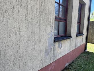 Jetzt wieder was ganz anderes: das Gerätehaus der FFW in Kleindittmannsdorf muss instandgesetzt werden, die Fassade weist mehrere Risse auf und teilweise dringt schon Feuchtigkeit ein. Ich weiß nicht, was sich die Firma gedacht hat, die 1992 das Gerätehaus gebaut hat. Es wurden zu kurze Fensterbänke eingebaut und dies ist unter anderem der Grund für das abplatzen des Putzes und für das Eindringen der Feuchtigkeit. Augenscheinlich wurde anscheinend auch kein rissüberbrückendes Gewebe eingebaut.