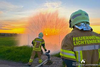 Zum Abschluss wurde noch das Hydroschild eingesetzt. Die Schutzwirkung gegen Hitzestrahlung sowie seine Einsatzmöglichkeiten bei Bränden oder als Riegelstellung wurden praktisch vorgeführt und ausprobiert.