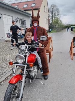 Die Hecken und Sträucher rund um den Sportplatz wurden mehrfach durchgekämmt, um ein Osternest zu suchen. Highlight des Tages war natürlich der Osterhase, welcher mit dem Motorrad angefahren kam. Er sorgte für strahlende Kinderaugen. Rückblickend glauben wir, dass es für die Kinder und auch für die Eltern, Großeltern und Besucher ein toller Ostermontag war.