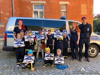 Am 09.05. war die Aufregung bei den „MiniLöschmeistern“ groß, es stand ein Ausflug zum Polizeirevier nach Kamenz im Dienstplan.
