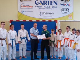 Auch die Mädchen und Jungen vom Lichtenberger Judoteam haben sich, nach dem Aufruf des Gemeinderates, an der Spendenaktion für den „Speed Smiley“ an der Bushaltestelle Mitte beteiligt. „Wir wollten aber nicht nur eine bestimmte Geldsumme von unserem Abteilungskonto überweisen, sondern wir wollten mit einer Aktion etwas Geld zusammenbekommen. Und so haben wir beschlossen, die hälfte der Einnahmen aus der anstehenden Altpapiersammlung zu Spenden“, so Abteilungsleiter Ralf Schreiter bei der Scheckübergabe an den Bürgermeister Thomas Wuttke am 24. Mai in der Lichtenberger Sporthalle. Die Judoka vom TSV 1886 Lichtenberg hoffen, dass die gesendeten 250 Euro eine gute Hilfe bei der Realisierung dieses, für alle Kinder des Ortes wichtigen, Projektes sind und dass wir recht schnell den „Speed Smiley“ leuchten sehen können.
