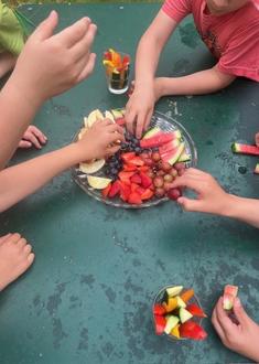 Zwischendurch gab es reichlich Obst und Gemüse, damit die Akkus wieder geladen werden konnten. Wir waren begeistert, über unsere sportlichen Kinder!
