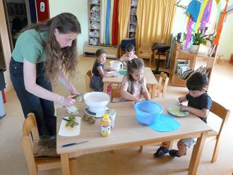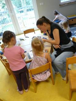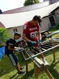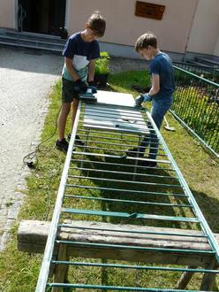 Und so unterstützten die vier Jungen unseren Hausmeister bei der Aufarbeitung der Gartentore und bei alltäglichen Aufgaben im haustechnischen Bereich. Die Mädchen schnupperten in den Erzieheralltag hinein und unterstützten die Erzieher und Erzieherinnen des Kinderhauses tatkräftig. Während der Schlafenszeit räumten sie noch unsere Spielhäuser und Kostümecke auf.
