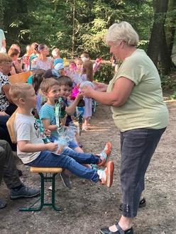 Aber das „Beste“ war das Zuckertütenfest im Lauterbachtal. Nachdem alle Kinder mit verschiedenen Aufgaben bewiesen haben, dass sie Schulkinder werden können, gab es eine ganz tolle Überraschung. Die Eltern der Hasenkinder haben gemeinsam mit Isabell und Simone das Märchen „Schneewittchen“ vorgeführt. Als dann die Zwerge noch einen Wagen voller Zuckertüten aus dem „Märchenwald“ mitgebracht hatten, war das Glück der Kinder perfekt!