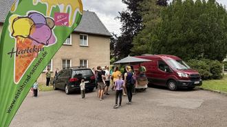 Außerdem kam der Eismann vom „Harlekin“ und auch vor dem Bürgerhaus herrschte reges Treiben. Viele Kinder kamen mit ihren Eltern oder Großeltern, um bei hochsommerlichen Temperaturen ein Eis zu genießen. Einigen hat es so gut gefallen, dass sie noch zum Grillen blieben und mitgegessen haben.