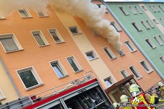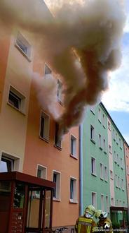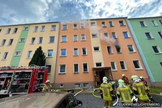 Wir wurden mit unserem Einsatzleitwagen sowie Löschfahrzeug zur Einsatzmeldung „Küchenbrand“ nach Pulsnitz alarmiert. Während der Anfahrt aus Richtung Lichtenberg war bereits eine starke Rauchentwicklung zu erkennen. Aufgrund von Fehlmeldung der eigentlichen Adresse musste die Einsatzstelle vorerst im Wohngebiet ausfindig gemacht werden. Die Fahrzeuge der Feuerwehr Lichtenberg trafen als erstes am Einsatzort ein. Bei Ankunft fanden wir eine starke Rauchentwicklung aus einer Wohnung im ersten Obergeschoss aus beiden Wohnungsseiten vor. Bei dem Gebäude handelte es sich um einen Wohnblock mit 8 Wohneinheiten pro Eingang. Mit 2 Trupps unter Atemschutz wurde der Küchenbrand, der sich bereits auf den Flur ausdehnte, gelöscht. Zeitgleich wurde das Treppenhaus Überdruck belüftet und die Anwesenheit aller Bewohner des Hauseinganges geprüft. Eine Person wurde dem Rettungsdienst übergeben und eine Katze in der Brandwohnung wurde mittels Drehleiter gerettet. Im Anschluss wurden alle Wohnungen auf Schadstoffbelastung geprüft. Wir unterstützen die Einsatzleitung mit dem Führungstrupp des ELW1 bei der Einsatzkoordination, unser Löschfahrzeug leitete den Abschnitt der aktiven Brandbekämpfung. Positiv zu erwähnen ist wieder einmal mehr die professionelle Zusammenarbeit aller Feuerwehren.