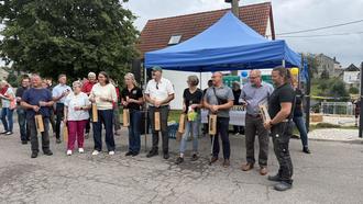 Mit dabei waren: Landrat Udo Witschas, meine Bürgermeisterkollegen Veit Künzelmann (Wachau), Barbara Lücke (Pulsnitz), Oberbürgermeister Frank Höhme (Radeberg), Sandro Bürger (Steina), Frank Eisold (Arnsdorf) sowie der CDU-Fraktionschef im Bautzener Kreistag, Matthias Grahl. Nach meiner Eröffnungsrede sprach unsere Pfarrerin sehr herzergreifende Worte, anschließend folgte das Grußwort des Landrats.
