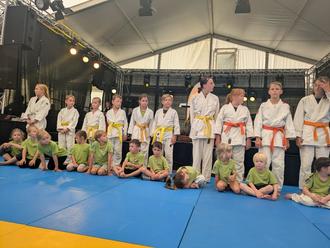 Am Sonntagnachmittag präsentierten Kindersportgruppe und Judokas ihr Können im Festzelt auf der Matte. Die Fußball-Bambinis kamen anschließend auch noch in ihrer Vereinskleidung dazu. Im Anschluss erhielten alle Kinder als Dankeschön eine Eismarke.