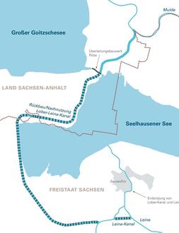 LMBV: Nach aktuellem Planungsstand werden Lober und Leine künftig bei Sausedlitz in den Seelhausener See eingebunden. Der Lober-Leine-Kanal geht dann außer Betrieb.