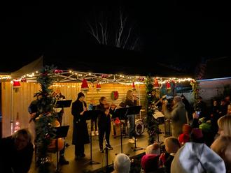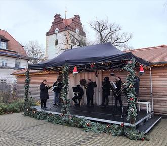So konnten die Löbnitzer Puppenspieler großen und kleinen Besuchern die märchenhafte Geschichte des „Rumpelstilzchen“ vorführen und dabei dem ein oder anderen ein Lächeln auf die Lippen zaubern. Später hieß es dann „Augen zu und Ohren auf“, denn die BigBand des Delitzscher Gymnasiums hat die Bühne mit Trompetenklängen und Geigentönen erobert. Währenddessen konnte man unserer Glühweine probieren oder sich eine der vielfältigen Köstlichkeiten schmecken lassen.