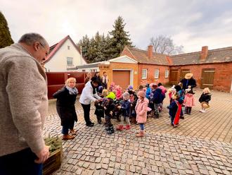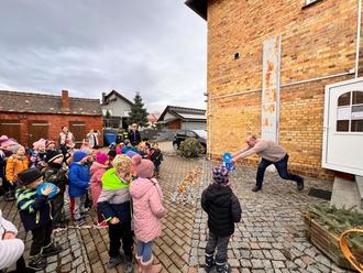 Ganz traditionell verabschiedeten sich die Kinder des Kinderhauses „Schwalbennest“ in Löbnitz von der schrillen und ausgelassenen Faschingszeit, in dem sie sich fröhlich gelaunt auf dem Gemeindeamt ankündigten. Sie sangen nach einem allerletzten „Löbnitz Helau“ Lieder, tanzten auf dem Hof und verzierten ihn mit kunterbuntem Konfetti und einer Menge Luftschlagen. Ganz besonders groß war die Freude bei allen, als der Bürgermeister schwungvoll die kleinen Naschereien über den Hof verteilte und ganz schnell das quirlige Suchen nach Süßem begann. Genauso lustig wie die Kinder gekommen sind, verabschiedeten sie sich winkend. Bis zum nächsten Mal.