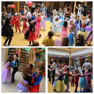 Bunt, fröhlich und laut ging es am Rosenmontag im Kinderhaus zu. Fasching, einer der schönsten Tage im Jahr. Endlich durften die Kinder sich wieder mal verkleiden. Viele schöne Schmetterlinge, Mäuse, Clowns und Vieles mehr. Zuerst konnten sich alle etwas stärken. Dafür sponserte unser Förderverein leckere Pfannkuchen. Danach feierten die Kinder in ihren Gruppen mit lustigen Spielen und vielen, vielen Naschereien weiter. Zum Schluss trafen sich die Kindergruppen in der Mitte unseres Hauses. Ausgelassen tanzten dort alle gemeinsam. Auch die Polonaise kam nicht zu kurz. Traditionell wird in unserem Haus nicht nur ein Tag Fasching gefeiert. Am Dienstag ging es dann gleich weiter und Aschermittwoch waren wir im Dorf sicherlich nicht zu überhören. Wie jedes Jahr besuchten wir den Bürgermeister und leierten ihm natürlich so einige Süßigkeiten aus dem Kreuz.