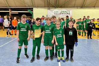 Zum Abschluss der beiden Turniertage starteten die D-Junioren, welche am Spielbetrieb mit einer Spielgemeinschaft mit Spröda teilnehmen, mit zwei Mannschaften. Nach dem sich unsere D-Junioren eine Woche zuvor beim Krostitzer Hallenturnier den Turniersieg sicherten, sollte auch in der sehr gut besuchten Löbnitzer Sporthalle der Turniersieg her. Ebenfalls wie bei den E-Junioren wurde in einem 8er-Turnier, aufgeilt in zwei Gruppen mit anschließenden Finalrunden gespielt. Nach einem etwas holprigen Start ins Turnier konnte sich die D1 für die große Finalrunde qualifizieren, die D2 spielte in der kleinen Finalrunde weiter. Nach vielen spannenden Spielen belegte die D1 den 3. Platz und die D2 den 8. Platz. Den Turniersieg holten sich die Jungs und Mädels des JFV Mulde-Lossa-Tal. Groß war der Jubel, als der bei der Siegerehrung der Name des besten Torhüters genannt wurde. Nach vielen tollen Paraden wurde verdient der Löbnitzer Johannes Adam zum besten Torhüter des Turniers gewählt.