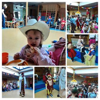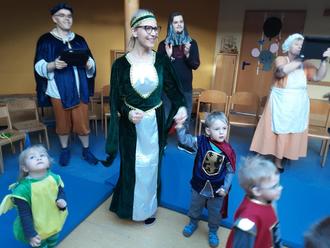 So wurden die Kinder aus dem Kirchlichen Kinderhaus Schwalbennest zum Rosenmontag von Clown Babaloo begrüßt. Viele lustige Spiele, Musik und Tänze hatte er für uns im Gepäck. Sogar manch kleiner Tanzmuffel ließ sich von ihm mitreißen. Auch die Erzieherinnen und Erzieher blieben nicht außen vor, spielten und tanzten kräftig mit. Viel zu schnell war der Vormittag vorbei. Aber niemand musste traurig sein. Seit vielen Jahren schon feiern wir immer zwei Tage hintereinander Fasching. Dieses Jahr stand er auch wieder unter einem Motto: „Zu Luthers Zeiten“. Martin Luther wird uns in diesem Jahr immer wieder begegnen und die Kostüme der Kinder finden dann auch das ganze Jahr im Kinderhaus Verwendung. Ein sehr originelles Kostüm bei den Kindern war die brennende Luthereiche. Nach zwei Tagen voller Ausgelassenheit wurde die Faschingszeit mit dem Asche abkehren durch das Dorf am Aschermittwoch beendet. Traditionell besucht das Kinderhaus an diesem Tag den Bürgermeister und den brachten die Kinder ganz schön zum Schwitzen. Sie forderten Süßigkeiten und er musste außerdem sein tänzerisches Talent unter Beweis stellen. Es gab für alle viel zu lachen. Dem Bürgermeister sei hiermit gesagt, dass er für das nächste Jahr seine Ausdauer wieder ordentlich trainieren muss.