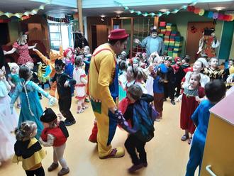 Zum Frühstück gab es leckere Pfannkuchen, bevor ein besonderer Gast für Begeisterung sorgte: Clown Rocky besuchte die Kinder und brachte mit seinem lustigen Programm viel Freude in die Faschingsfeier. Bei zahlreichen Spielen und poppiger Faschingsmusik wurde gemeinsam getanzt und gelacht.